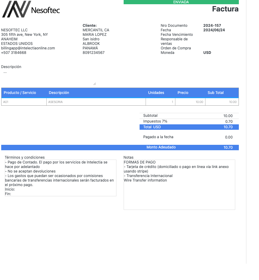 Funciones de Intelectia: Facturación